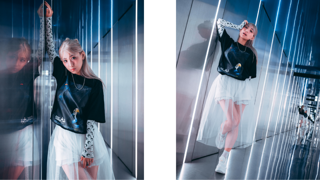 The model for the collection is Tsunko, who is active as a cosplayer, voice actor, DJ, and anime T-shirt enthusiast.