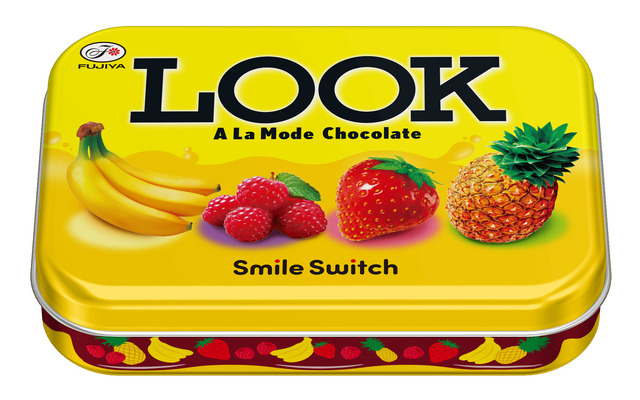 The “Look (A La Mode) Can” is designed to evoke the classic “Look (A La Mode)” packaging. This delightful can is filled with two pieces each of the banana, raspberry, strawberry, and pineapple flavored “Look” chocolates.