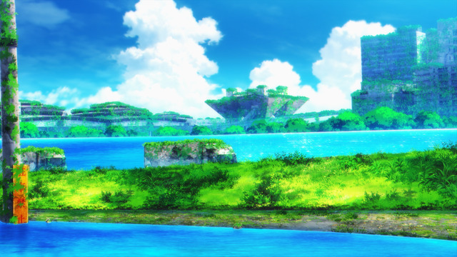 As evening falls, Airi murmurs, “Again, I hear sounds, music…” She opens a radio app, picks up a signal, and receives music! Viewers immediately recognized the tune: “I’ve heard that song somewhere…”, “A worldline where LiSA exists!”, “It’s ‘crossing field’!”, “Is that ‘crossing field’!?”, “It’s the early OP for SAO!” Indeed, it was “crossing field,” the opening theme song for the TV anime *Sword Art Online*, performed by LiSA. Then, the DJ’s voice prompted another wave of reactions online.
