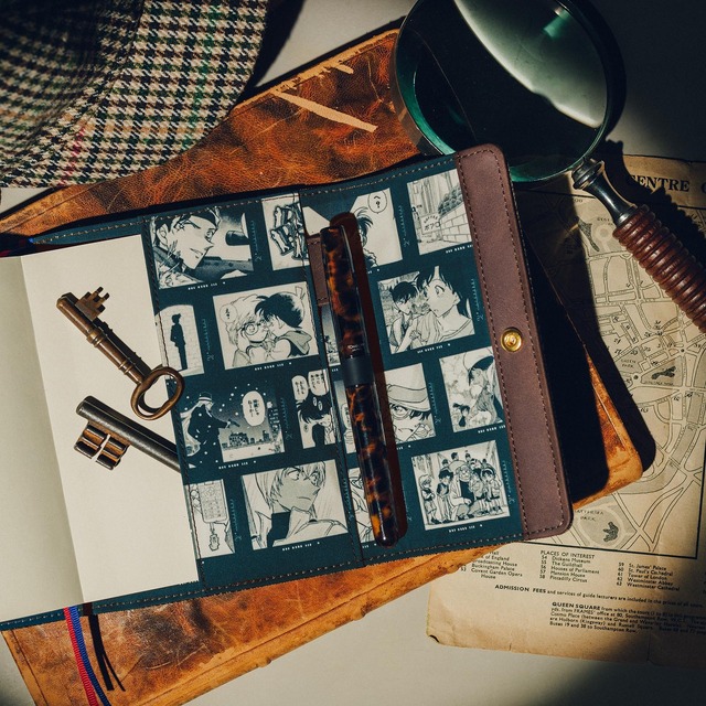 The planner covers feature a classical design inspired by the attire of the British detective Conan himself admires. The inside is lined with numerous iconic scenes extracted from ‘Meitantei Conan’.