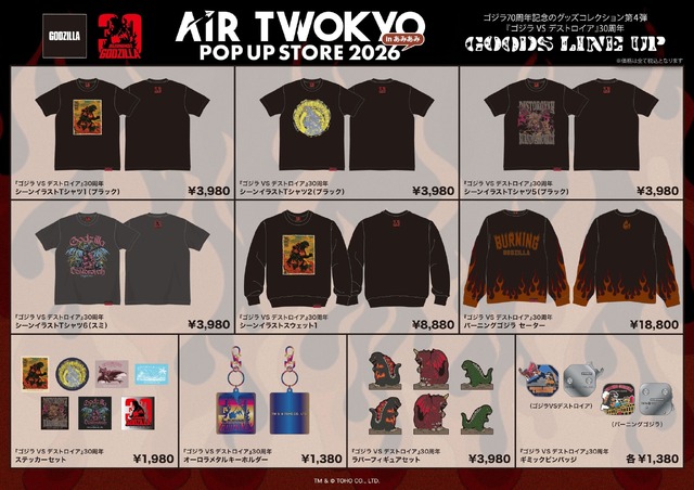 - Gojira: The 4th wave of the 70th-anniversary goods collection, celebrating “Gojira vs. Destoroyah“‘s 30th anniversary.